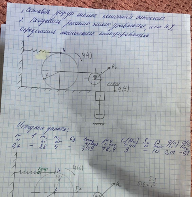 Типовой расчет по теоретической механике, "Колебания линейной системы с одной степенью свободы", + графики, зачтено
