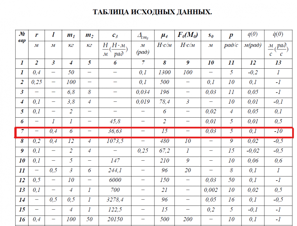Вариант 7 - ДЗ №2 - Колебания системы с одной степенью свободы седьмой вариант