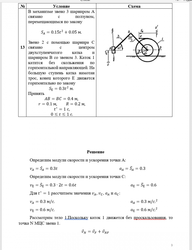 ДЗ 2: КИНЕМАТИКА ПЛОСКОГО ДВИЖЕНИЯ ТВЁРДОГО ТЕЛА: Вариант 13
