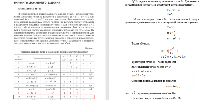ДЗ 1: Кинематика точки и простейших движений твердого тела вариант 10
