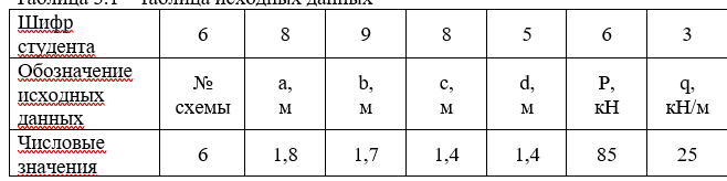 Таблица 3.1 – таблица исходных данных