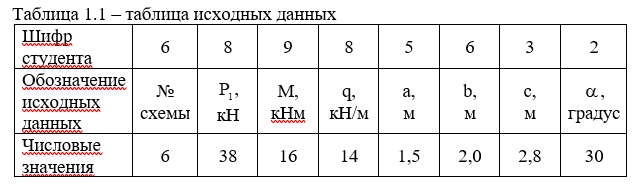 Таблица 1.1 – таблица исходных данных