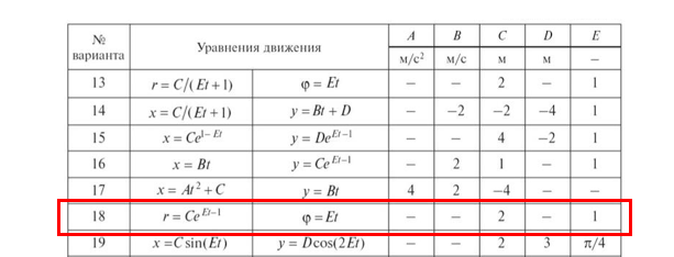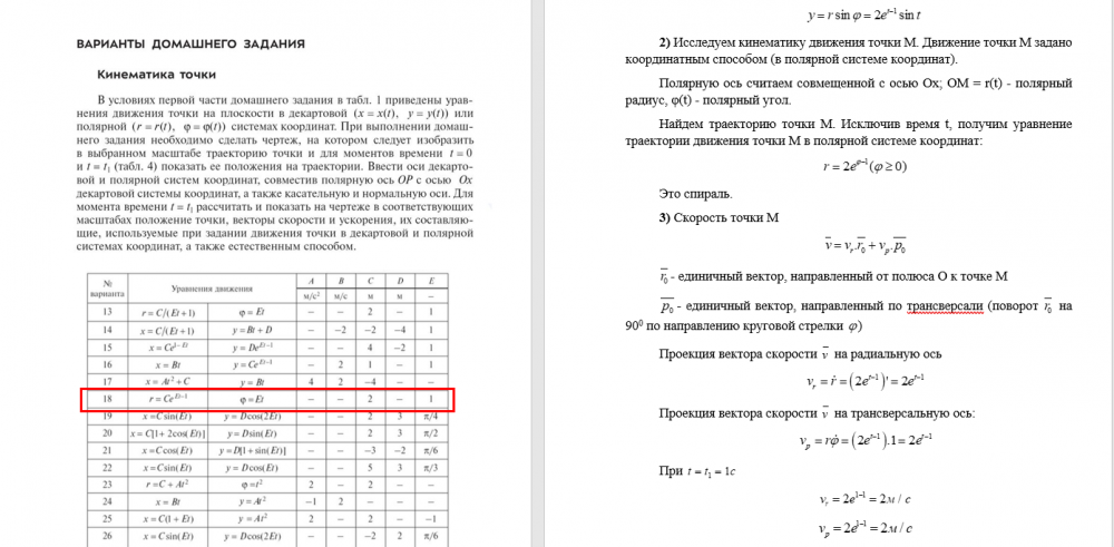 ДЗ 1: Кинематика точки и простейших движений твердого тела вариант 18