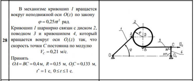 ДЗ 2: Кинематика плоского движения твердого тела вариант 28