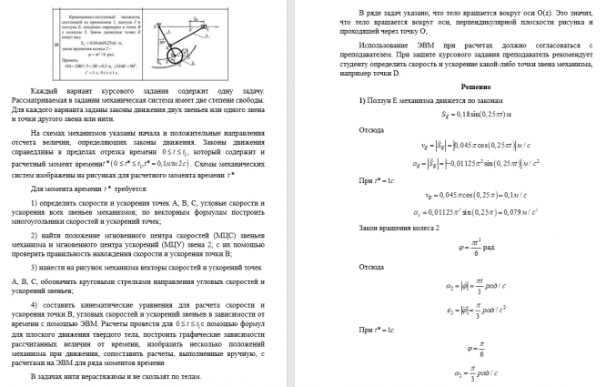 Использование ЭВМ при расчетах должно согласоваться с преподавателем. При защите курсового задания преподаватель рекомендует студенту определить скорость и ускорение какой-либо точки звена механизма, например точки D.