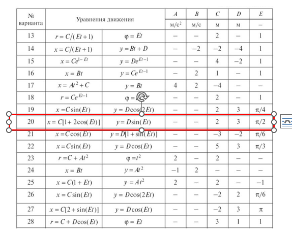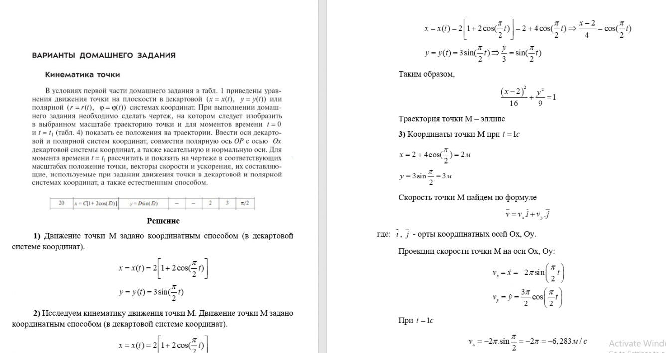 ДЗ 1: Кинематика точки и простейших движений твердого тела вариант 20