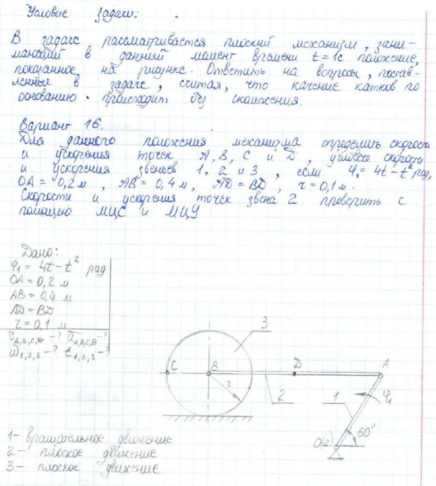 ДЗ 2: Кинематика плоского движения твердого тела вариант 16