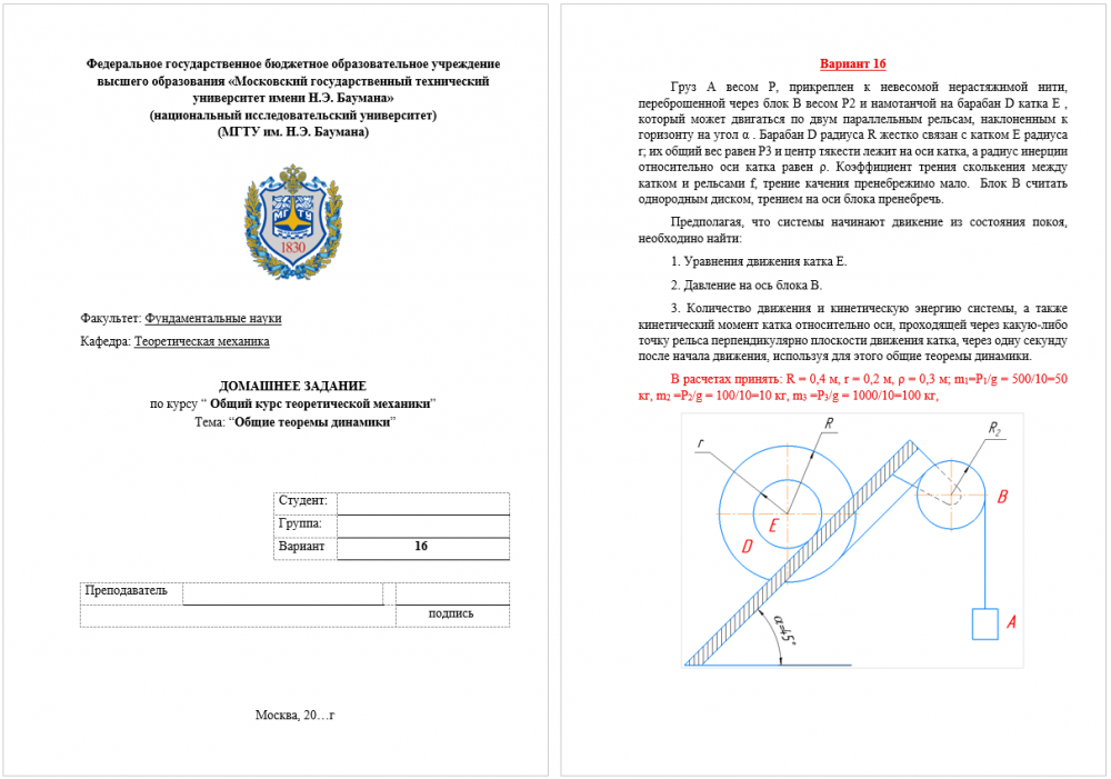 🌟Вариант 16 - Общие теоремы динамики (ОЧЕНЬ СТАРАЯ ЗАДАЧА) (ПЕЧАТНАЯ ВЕРСИЯ) 💥