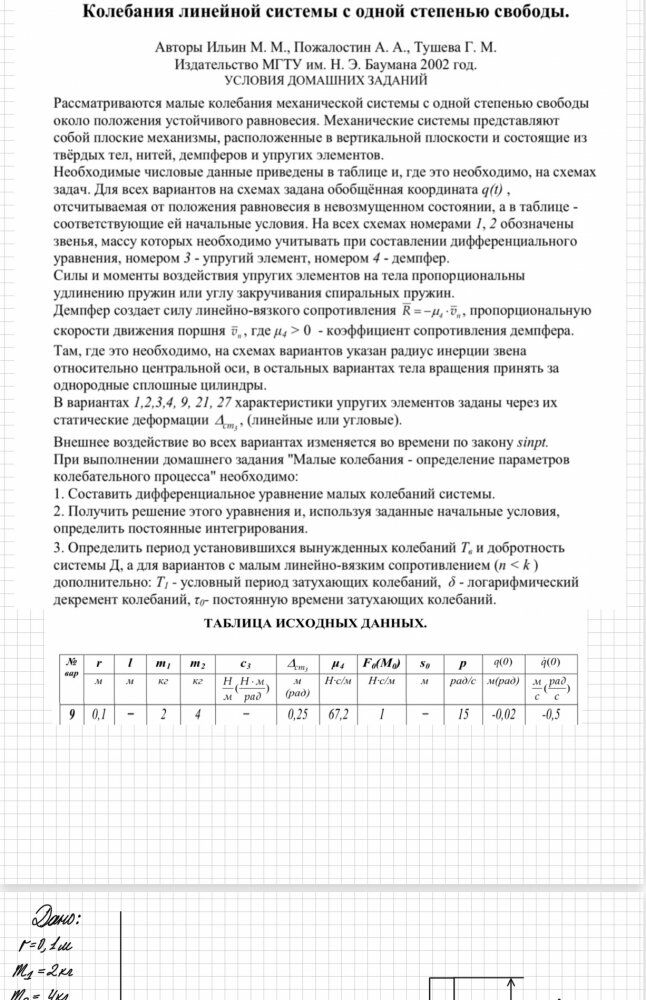 Полностью выполненное и проверенное преподавателем домашнее задание по термеху - колебания; выполнено на планшете, содержит много рисунков и расчётных схем. РЕШЕНЫ ПЕРВЫЕ ТРИ ПУНКТА!