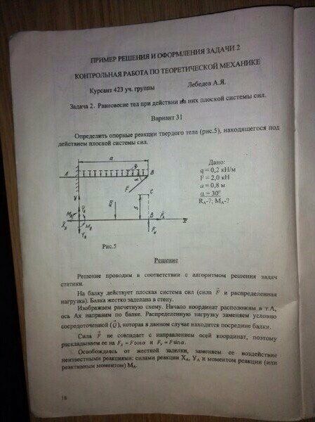 ДЗ: Определение опорных реакций. Вариант 5