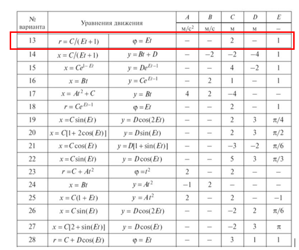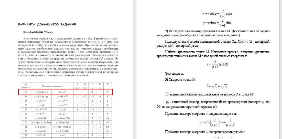 ДЗ 1: Кинематика точки и простейших движений твердого тела вариант 13