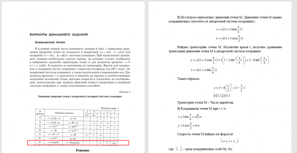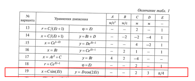 ДЗ 1: Кинематика точки и простейших движений твердого тела вариант 19