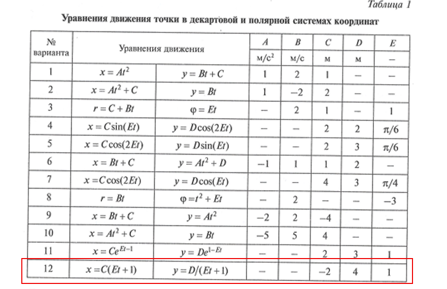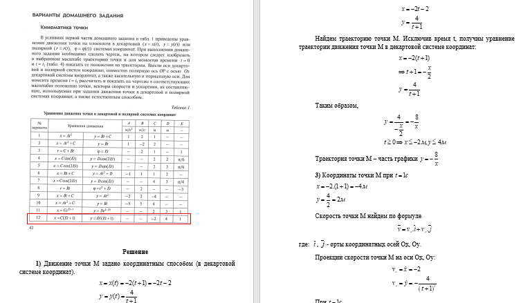 ДЗ 1: Кинематика точки и простейших движений твердого тела вариант 12