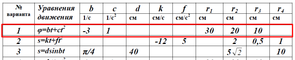 ДЗ 1: Кинематика точки и простейших движений твердого тела вариант 1