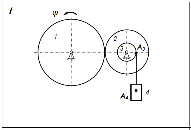 КИНЕМАТИКА ТОЧКИ. КИНЕМАТИКА ПРОСТЕЙШИХ ДВИЖЕНИЙ ТВЁРДОГО ТЕЛА КИНЕМАТИКА ТОЧКИ. Варианты 1-30 По заданным в прямоугольных декартовых координатах уравнениям движения точки, считая t ≥ 0, найти её траекторию и для момента времени t = 1 с величины и направления её: 1) скорости; 2) ускорения. Сделать чертёж, на котором изобразить траекторию точки, её положение при t = 1 с, найденные векторы скорости и ускорения. Данные приведены в табл. 1. КИНЕМАТИКА ПРОСТЕЙШИХ ДВИЖЕНИЙ ТВЕРДОГО ТЕЛА Для момента времени t = 1 с по заданному закону движения звена 1 определить: 1) угловые скорости и ускорения пронумерованных звеньев механизма, указать на чертеже круговыми стрелками их направления; 2) скорости и ускорения точек А3, А4, принадлежащих третьему и четвертому звеньям механизма; изобразить их на чертеже.