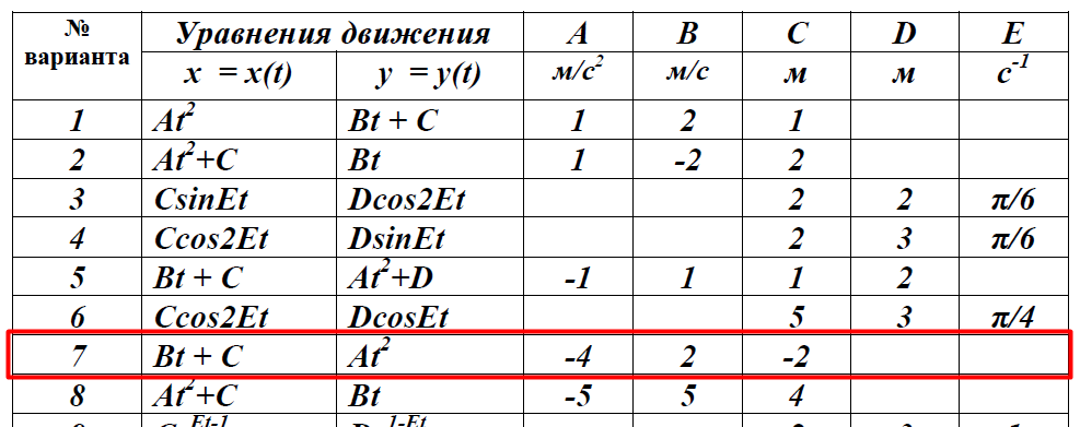 ДЗ 1: Кинематика точки и простейших движений твердого тела вариант 7
