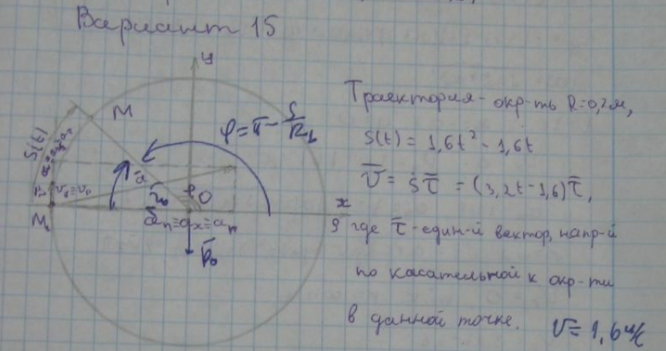 ДЗ 1: Кинематика точки и простейших движений твердого тела вариант 15