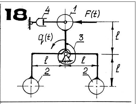 Колебания линейной системы с одной степенью свободы. Авторы Ильин М. М., Пожалостин А. А., Тушева Г. М. Издательство МГТУ им. Н. Э. Баумана 2002 год. УСЛОВИЯ ДОМАШНИХ ЗАДАНИЙ Рассматриваются малые колебания механической системы с одной степенью свободы около положения устойчивого равновесия. Механические системы представляют собой плоские механизмы, расположенные в вертикальной плоскости и состоящие из твёрдых тел, нитей, демпферов и упругих элементов. Необходимые числовые данные приведены в таблице и, где это необходимо, на схемах задач. Для всех вариантов на схемах задана обобщённая координата q(t) , отсчитываемая от положения равновесия в невозмущенном состоянии, а в таблице - соответствующие ей начальные условия.
