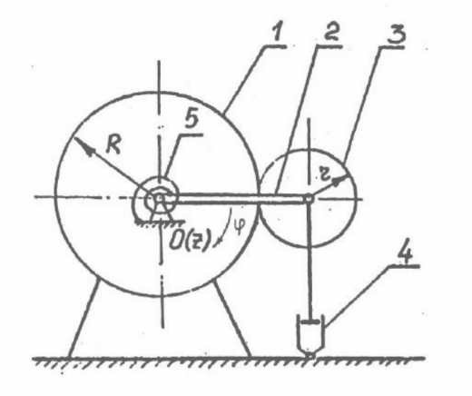 Ось О(z) неподвижной шестерни 1 связана невесомым водилом 2 с осью подвижной шестерни 3. Шестерню 3 считать однородным диском. Система совершает малые колебания в вертикальной плоскости окрестности положения равновесия, соответствующего положению ф=0, где ф(t) - угол поворота водила 2.