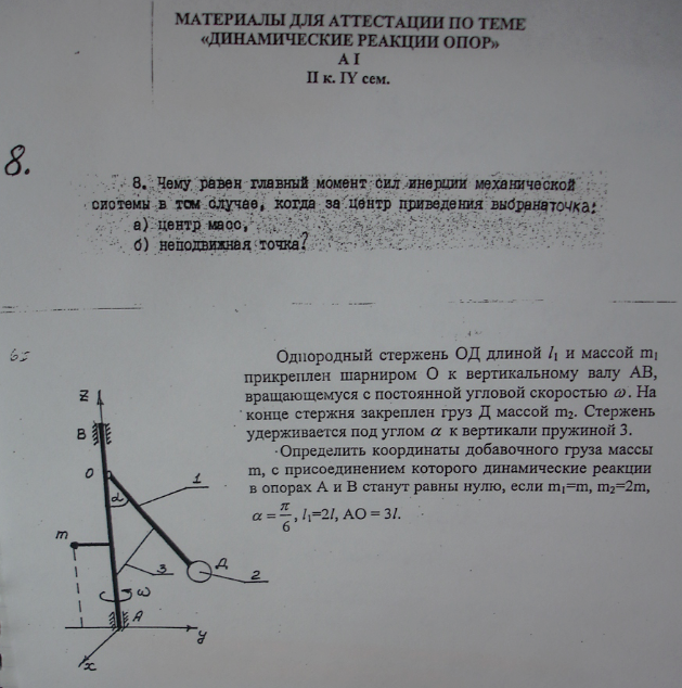 Вопросы/задания к контрольной работе: Билеты РК Динамические реакции опор