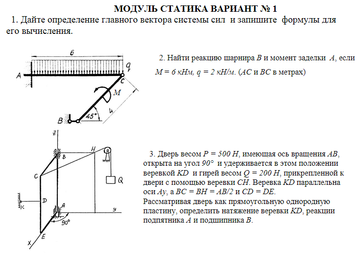 Вопросы/задания к контрольной работе: Рк статика билеты