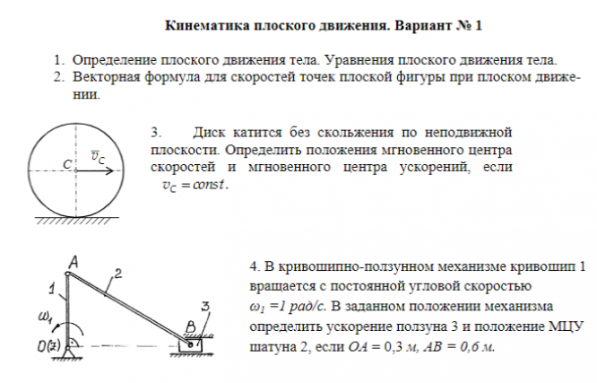 Условия задач и теории к рубежному контролю по кинематике плоского движения