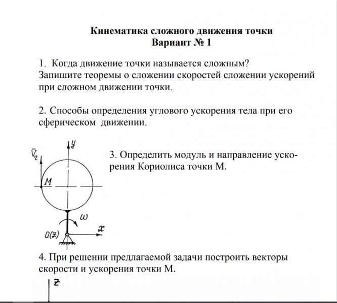 Вопросы/задания к контрольной работе: Рубежный контроль. Кинематика сложного движения точки. Условия