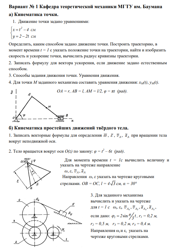 Для студентов МГТУ им. Н.Э.Баумана по предмету Теоретическая механикаКинематика точки и простейшие движения твердого телаКинематика точки и простейшие движения твердого тела
