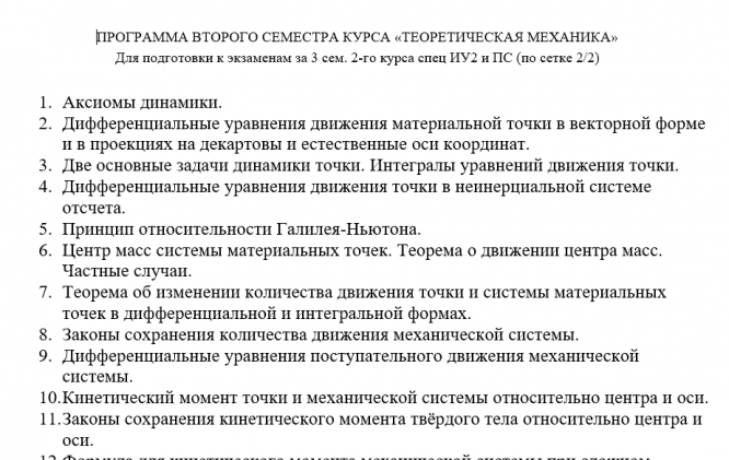 Для студентов МГТУ им. Н.Э.Баумана по предмету Теоретическая механикаЭкз вопросы II сем обучения ДинамикаЭкз вопросы II сем обучения Динамика