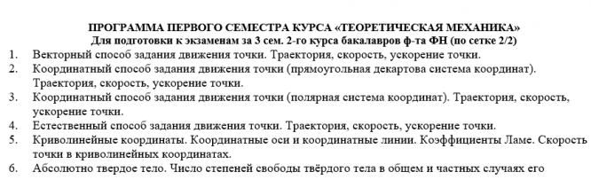 Вопросы/задания к экзамену: Экз вопросы I сем обучения Кинематика-статика (ФН)