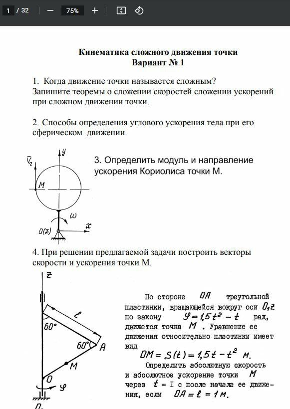 Для студентов МГТУ им. Н.Э.Баумана по предмету Теоретическая механикаРК №3 - Кинематика сложного движения точкиРК №3 - Кинематика сложного движения точки 2022-10-15СтудИзба
