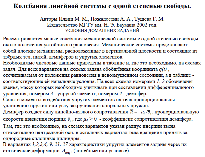 Для студентов МГТУ им. Н.Э.Баумана по предмету Теоретическая механикаКолебания линейной системы с одной степенью свободыКолебания линейной системы с одной степенью свободы