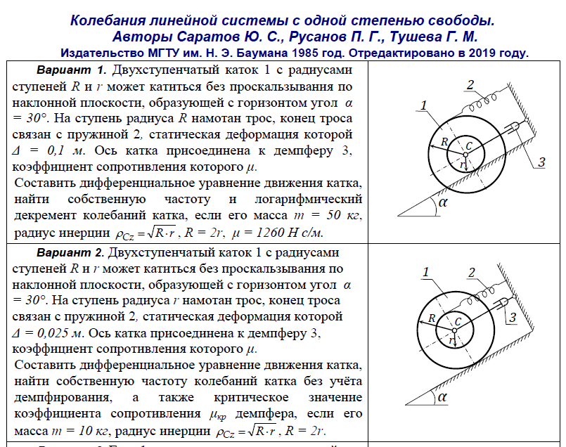 Для студентов МГТУ им. Н.Э.Баумана по предмету Теоретическая механикаКолебания линейной системы с одной степенью свободыКолебания линейной системы с одной степенью свободы