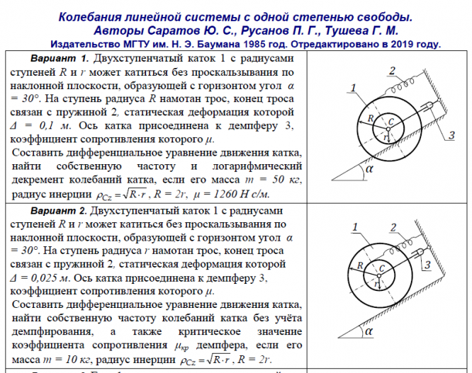 Для студентов МГТУ им. Н.Э.Баумана по предмету Теоретическая механикаКолебания линейной системы с одной степенью свободыКолебания линейной системы с одной степенью свободы 2023-04-25СтудИзба