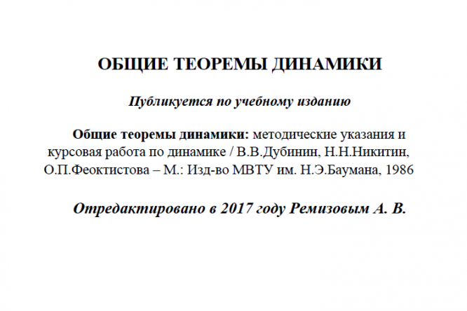 Для студентов МГТУ им. Н.Э.Баумана по предмету Теоретическая механикаОбщие теоремы динамикиОбщие теоремы динамики 2023-06-09СтудИзба