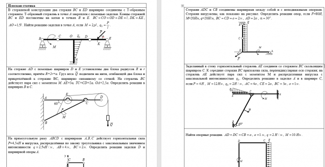 Стержни ADC и CB соединены шарнирами между собой и с неподвижными опорами. Стержни нагружены, как показано на рисунке. Определить реакции опор, если F=80H, M=20Hм, q=20H/м, , , . |