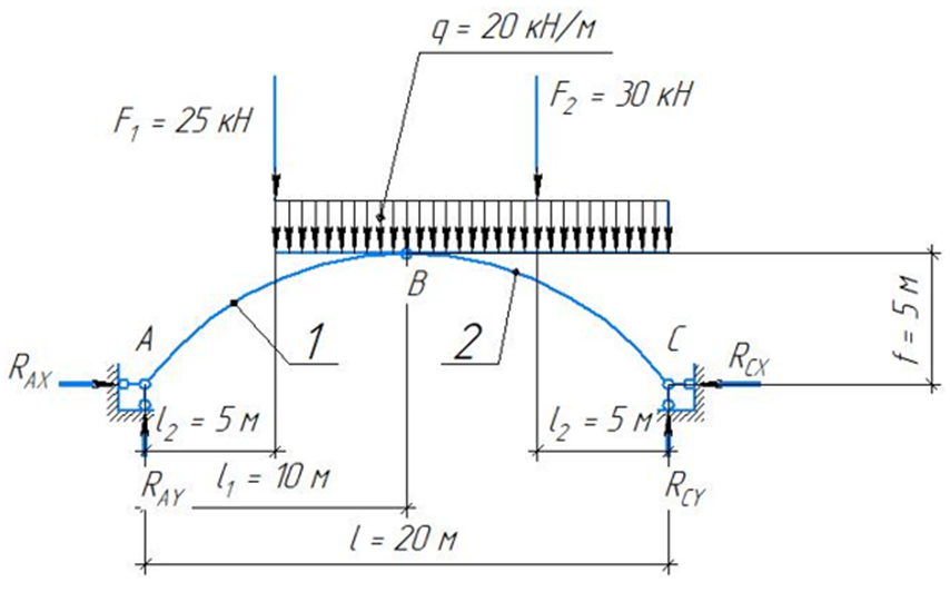 Для заданной арки найти реакции в опорах и выполнить проверку найденных реакций