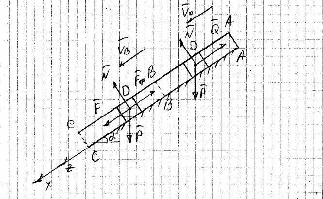 Главная » Учебные материалы » Теоретическая механика » Решения задач » Несколько классов/семестров » Груз D массой m, получив в точке A начальную скорость V_0, движется в изогнутой трубе ABC, расположенной в вертикальной плоскости. На участке AB на груз кроме силы тяжести действует, согласно индивидуальному условию, либо постоянная сила Q (ее нап