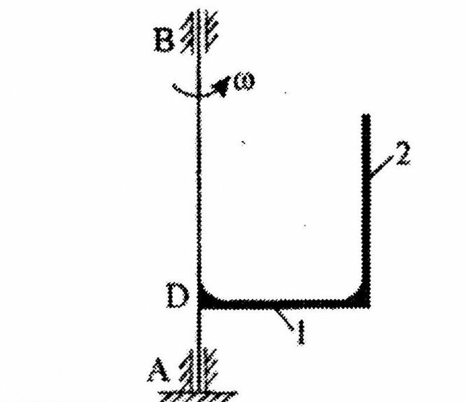 К вертикальному валу AB, вращающемуся вокруг своей оси с угловой скоростью ω=const, жестко прикреплена в точке D конструкция из двух тяжелых стержней 1 и 2.