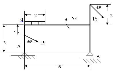 Исходные данные: P1=15 кН; P2=20 кН; М=4 кН*м; q=3 кН/м.