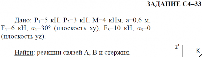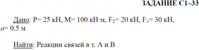 Для студентов КГТУ по предмету Теоретическая механикаНайти реакции связей в т. А и ВНайти реакции связей в т. А и В