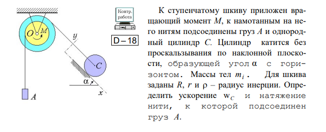 Для студентов ИДДО НИУ «МЭИ» по предмету Теоретическая механикаКМ-3. Контрольная работа "Общие теоремы динамики" - вариант 18КМ-3. Контрольная работа "Общие теоремы динамики" - вариант 18