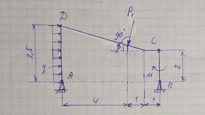 Задача: Написать уравнения равновесия и найти реакции связей двух балок, соединенных шарниром