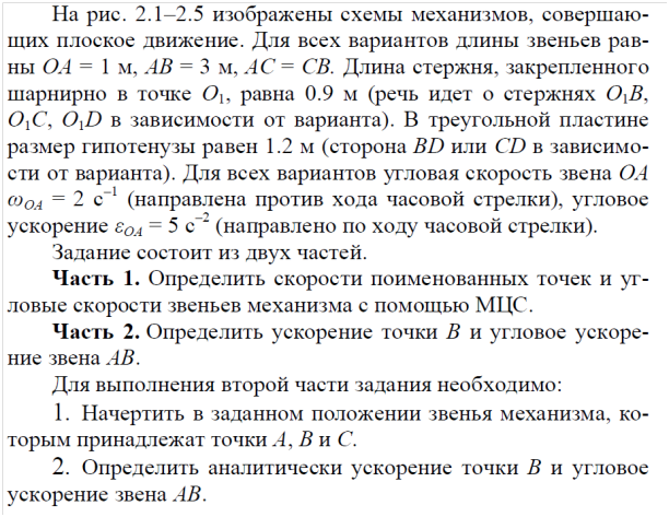Задача: Кинематический рассчет плоского механизма Вариант 19