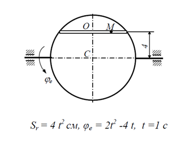 Дано уравнение относительного движения точки М: OM = Sr = Sr(t) (ОМ-дуговая координата) и уравнение вращательного движения тела φe = φe(t).