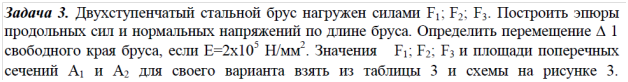 Задача 3: Рассчет бруса на осевое расяжение-сжатие вариант 5