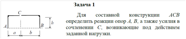 Для студентов по предмету Теоретическая механикаОпределение реакций связей составной конструкцииОпределение реакций связей составной конструкции