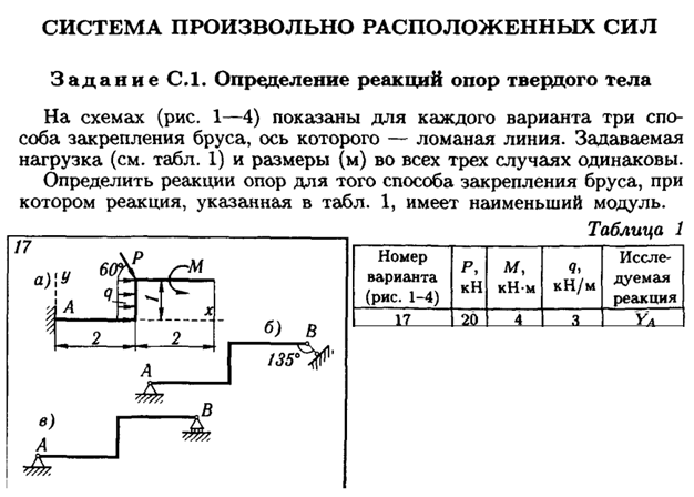 Задача С.1: опреление реакций опор твердого тела вариант 17
