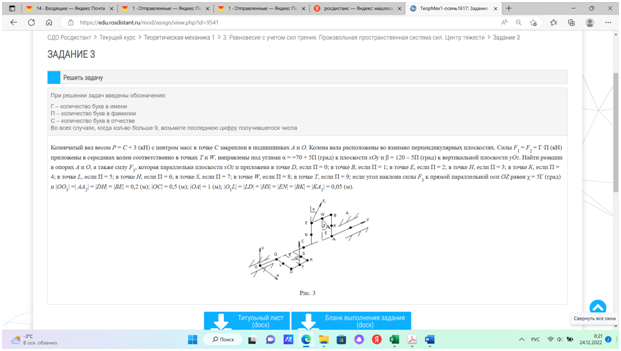 Задача 3: Произвольная пространственная система сил вариант 6-7-12