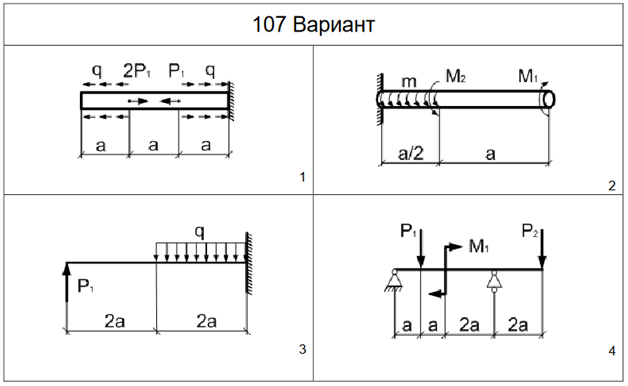 Задача: Построение эпюр внутренних силовых факторов в статически определимых системах вариант 107